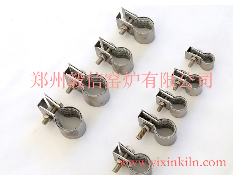 硅碳棒内编织G型带螺丝夹,其做工工艺复杂,使用效果好,寿命长等特点,在直径20以上硅碳棒中使用,基本解决了硅碳棒接触不好,高温氧化烧坏,等问题。硅碳棒G型内编织夹主要由G型夹和编织带组成,编织带和G型夹由8颗铆钉连接,解决了单一G性价比较硬,或者接线处不规矩等问题。欢迎广大客户选购。