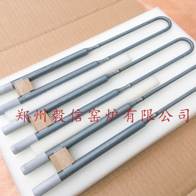 氧化铝陶瓷热处理1800型硅钼棒U型二硅化钼加热棒,硅钼棒环保节能,安装更换方便,耐温高,在1400-1700的电炉中使用广泛,管式炉,箱式炉,气氛炉,推板窑,隧道窑,升降炉,马弗炉等。一种阻性电热元件,氧化气氛下高温使用,表面会生成一层保护膜,保护硅钼棒内部不再氧化。保护膜主要成分是二氧化硅,可反复生成,但在这个过程中硅钼棒会逐渐变细,直至在细处或小截面处负荷过大烧断。所以在硅钼棒使用过程中,要对其表面负荷进行合理选择,使生产顺利,也节约成本。