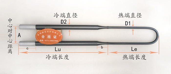 硅钼棒测量方式如下,注意冷端热端的划分是从焊接口开始的,中心距为两冷端圆心距。