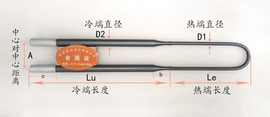 够买硅钼棒常常需要提供一些参数,U型硅钼棒参数可参考下图测量: